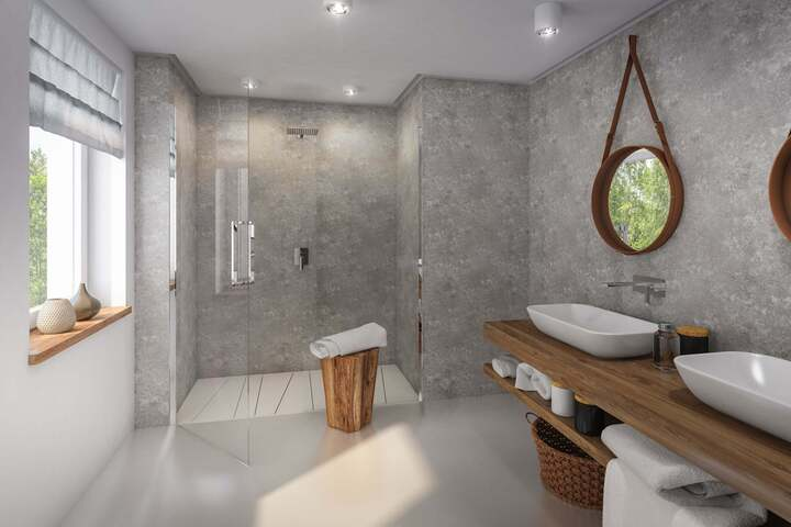 Our PVC Concrete Shower Wall Panels are ideal for bathrooms, showers and other wet areas. Each Panel will cover an area of 1000mm wide by 2400mm high without the need for joins in a shower area. The Panels are 10mm in thickness and extremely strong.