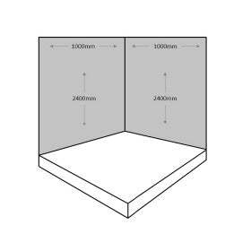 The 2 sided Shower Wall Panel Kit will cover a total area of 2000mm wide by 2400mm in height. This kit is perfect for 2 sided shower trays. (up to 1000 x 1000mm)
