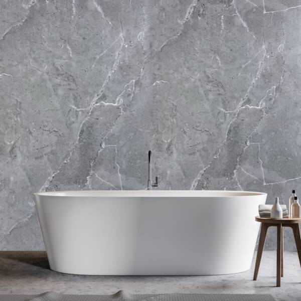 This Large Florence Marble Shower Panel is a stylish new addition to our shower wall panel collection. Its exquisite marble design features a matt deepโgrey finish with a subtle grey stone veining effect, bringing a sophisticated and elegant touch to any room.