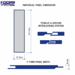 • Easily installed with a basic range of DIY tools. We advise running a thin bead of silicone down the tongue and groove fitting to create that extra water tight seal in wet areas.